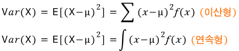 - 분산 : 확률분포의 산포도를 측정하는 것